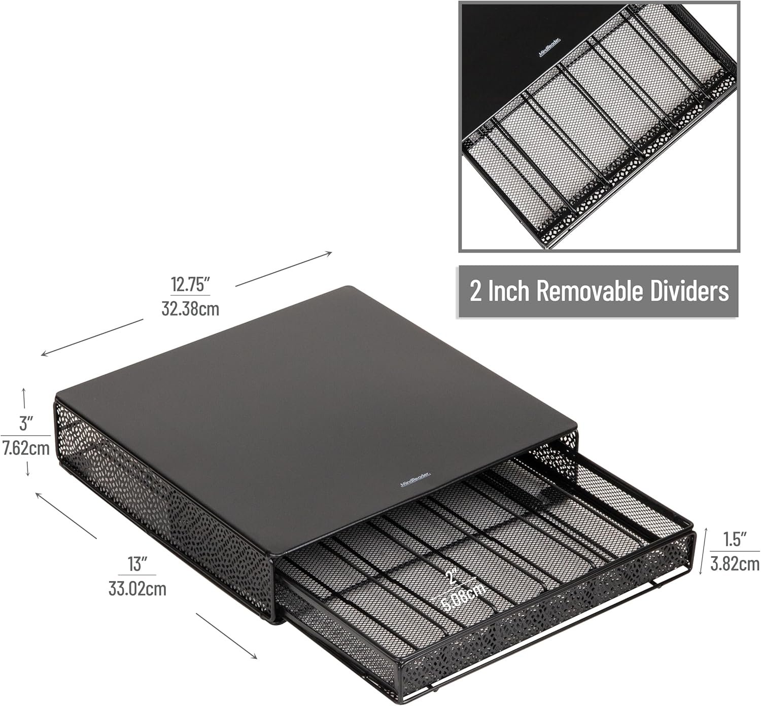 The Mind Reader Single Serve Coffee Pod Drawer offers customizable storage for up to 36 pods, with durable metal construction and a smooth sliding drawer to keep your countertop organized and clutter-free. Ideal for any coffee lover, this sleek organizer from Mind Reader maximizes convenience and style.