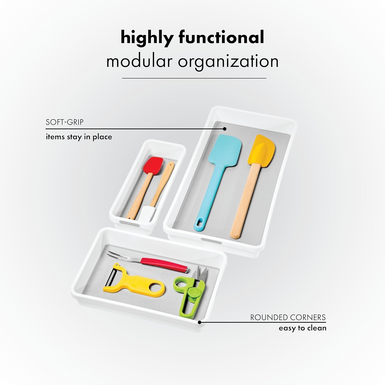 The madesmart Tray Set of 3 offers versatile, durable, and non-slip storage bins to keep your kitchen, office, or junk drawers neatly organized and clutter-free. Enjoy premium quality from the madesmart brand—perfect for anyone seeking an efficient and long-lasting organizing solution.