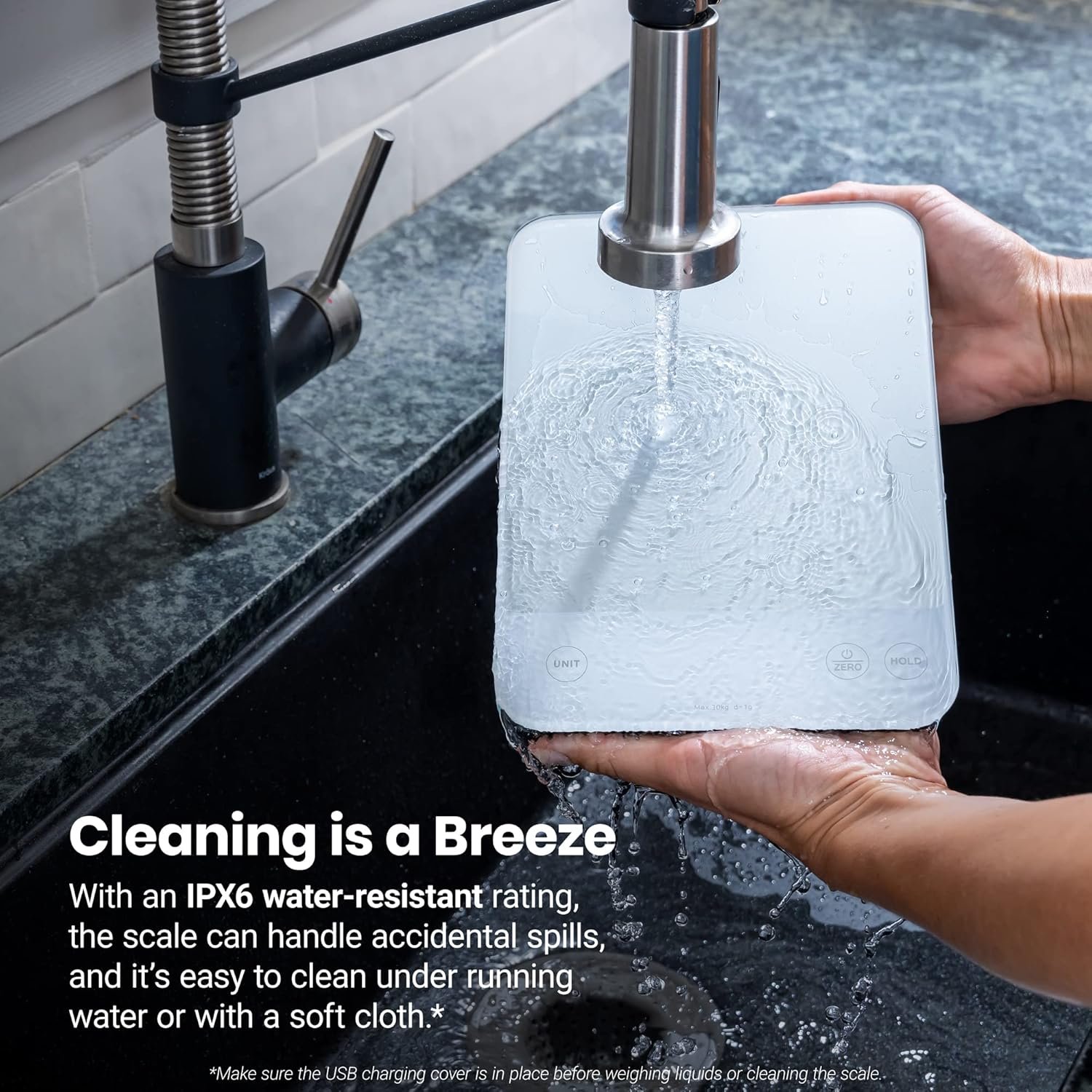 • IPX6 Water Resistant: The patented water-resistant shield lets you confidently measure liquids or wipe away messes without worry.