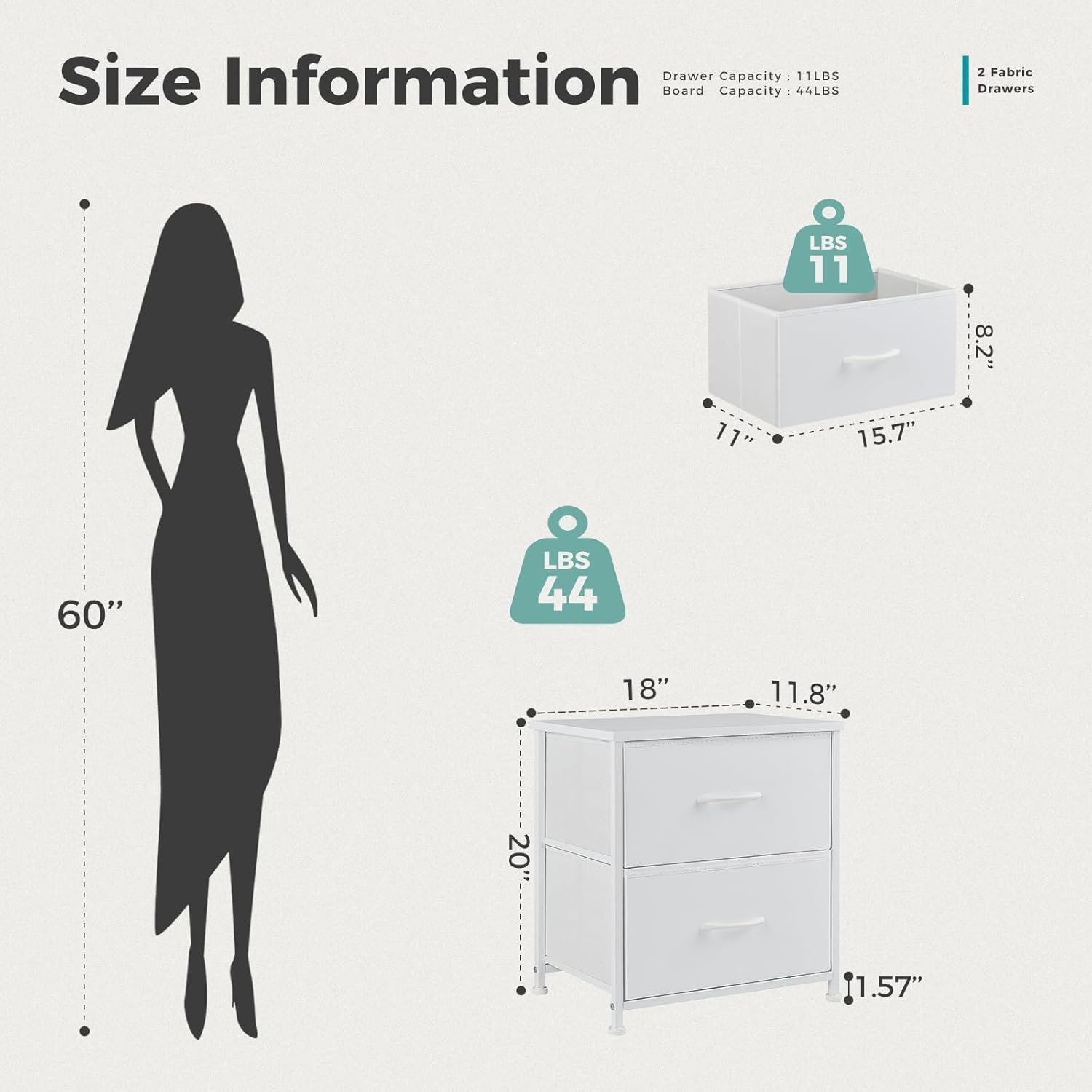 - Dual fabric drawers with smooth handle pulls: Perfect for bedroom storage or as a compact nightstand for essentials, clothing, or devices