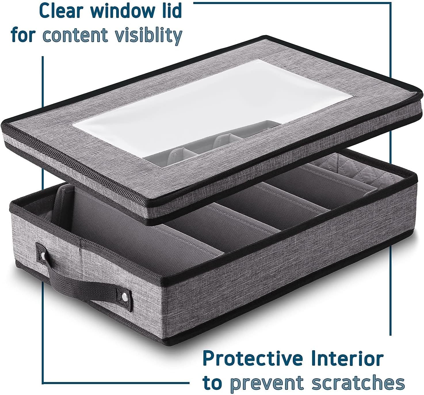 - Spacious Dimensions: At 10” x 15.5” x 2.5”, this storage with handles is built to house a full service for 12, perfect for both special occasions and everyday use.