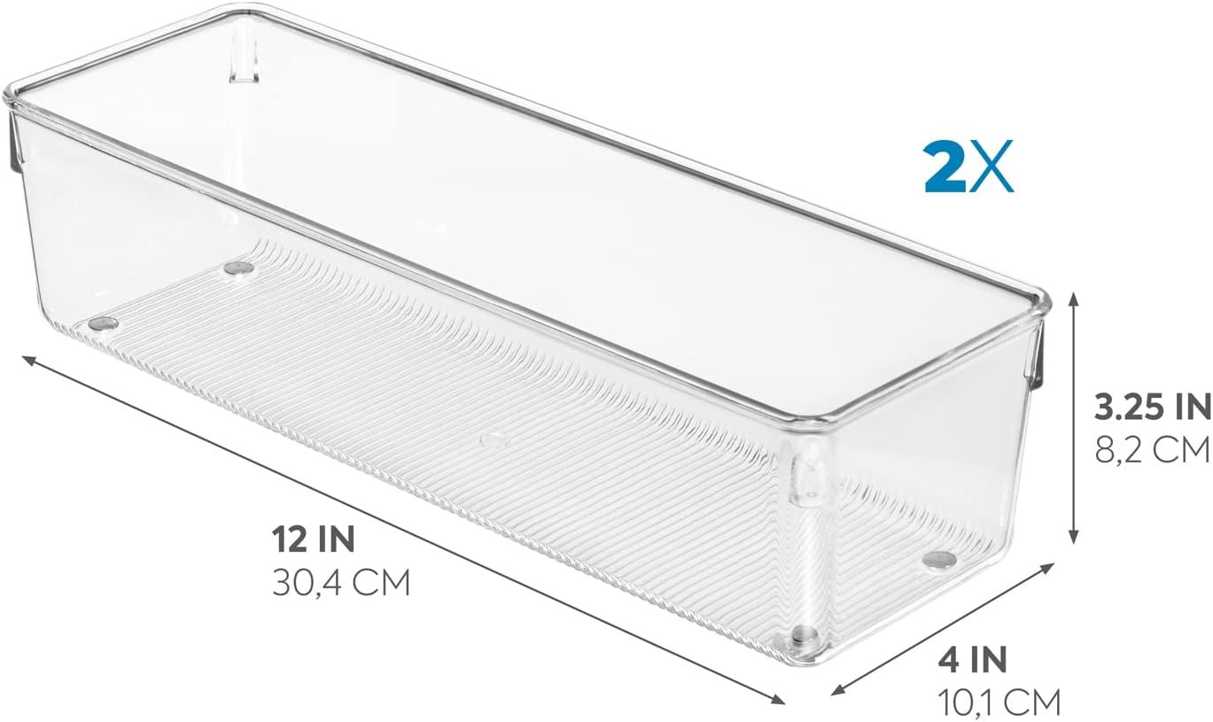 Measuring 4″ x 12″ x 3″, this clear kitchen organizer fit smoothly into most kitchen drawers—no jamming or constant rearranging needed. The set of two is particularly handy if you like separating serving pieces from standard cutlery.