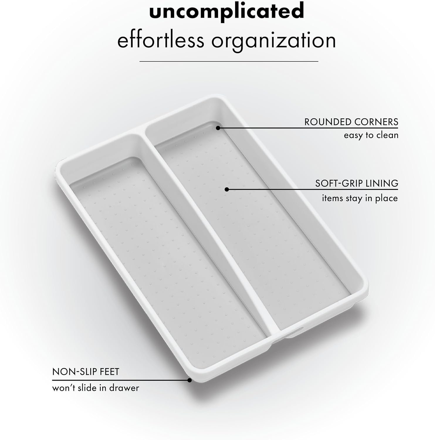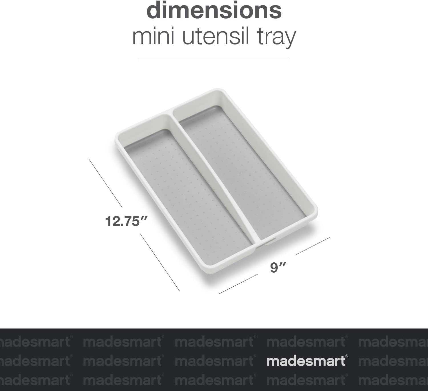 The madesmart Classic Mini Utensil Tray is a compact, BPA-free organizer with two spacious, non-slip compartments—perfect for keeping your kitchen or home essentials tidy and easily accessible. Built for durability and versatility, this tray from madesmart fits small drawers while offering reliable, clutter-free storage for any room.