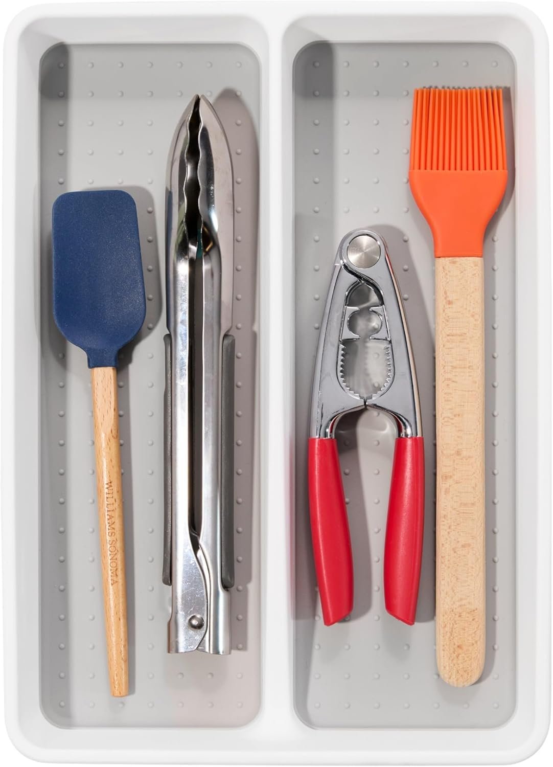 - Non-slip organizer: Sturdy rubber feet and a soft grip liner prevent the tray from shifting, providing secure kitchen drawer storage even during quick kitchen tasks.